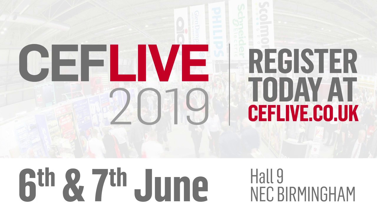 Join us at the UK’s biggest electrical event – CEF LIVE 2019 which takes place at the NEC Arena, Birmingham on 6th and 7th June 2019.